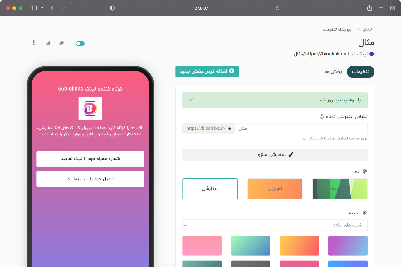 صفحه لینک بیو منحصر به فرد و بسیار قابل تنظیم خود را به راحتی ایجاد کنید.
