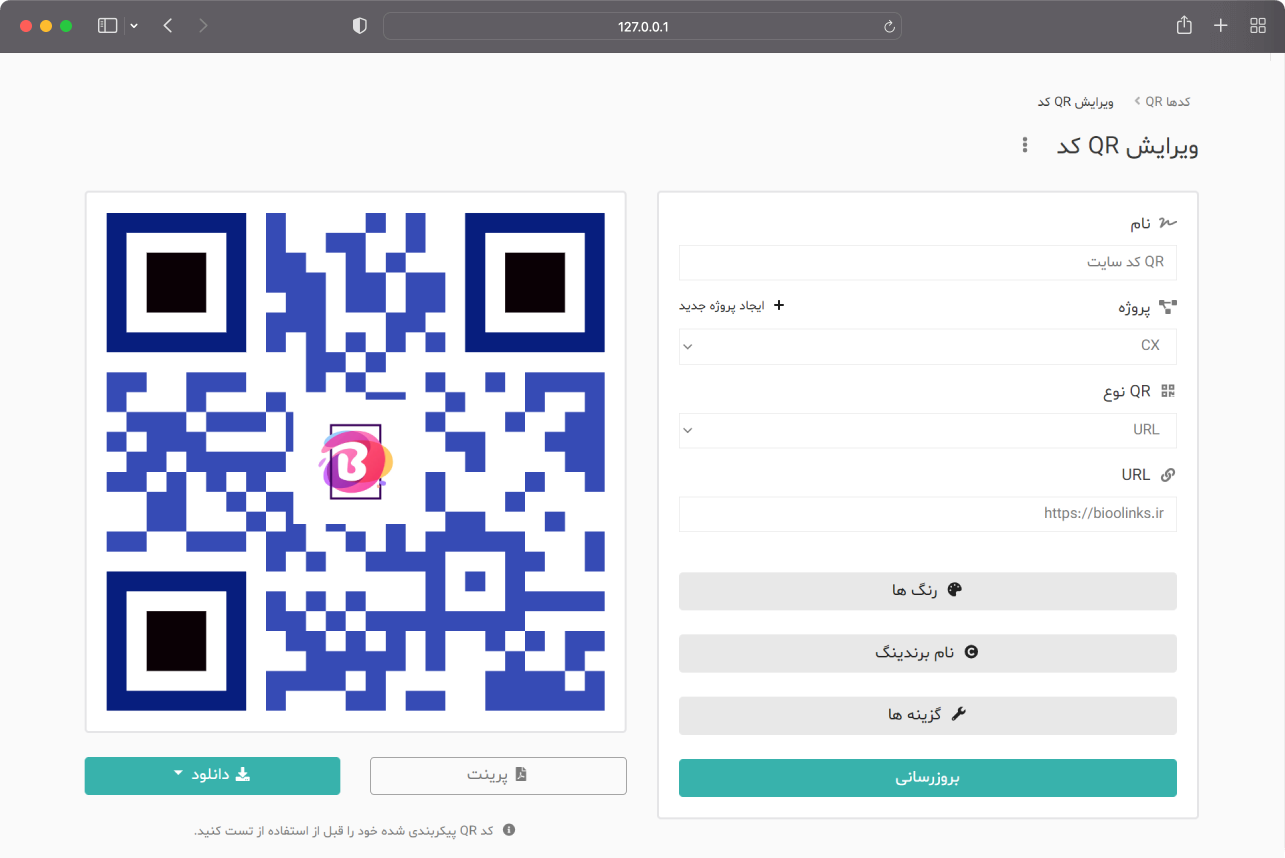 سیستم تولید کننده کد QR کاملاً برجسته با الگوهای آسان برای استفاده.